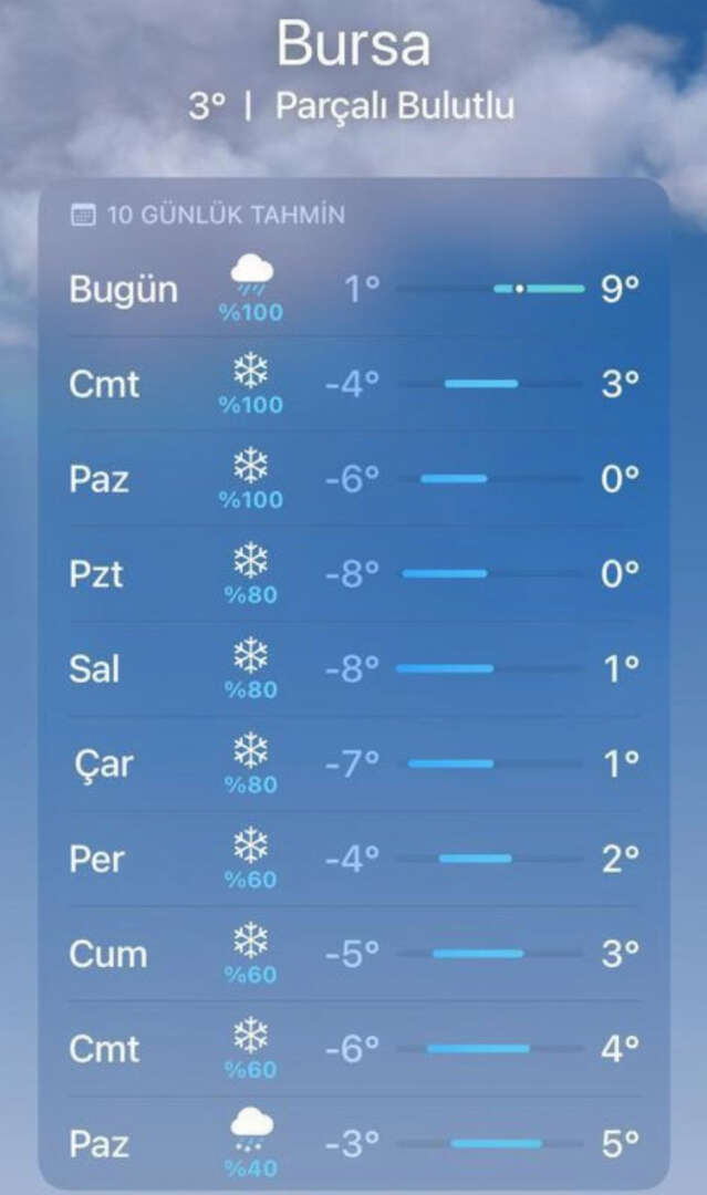 Bursa'da 10 günlük hava tahmini şöyle: