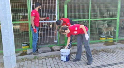 Yüzlerce kedi ve köpeğe ev sahipliği yapan barınakta kafesleri boyayan, tadilat yapan katılımcılar, hayvanlarla ilgilenip onlarla oynadı.