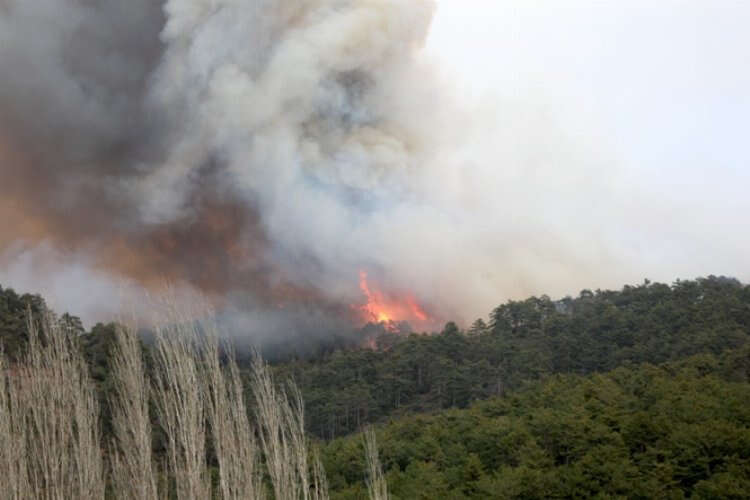 Kuvvetli lodosun da etkisiyle yayılan alevlerin olduğu bölgelerden yükselen dumanın görülmesi üzerine ihbarda bulunuldu.