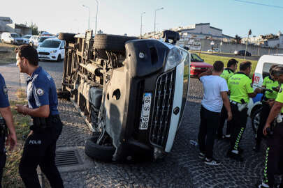 Bursa Organize Sanayi Bölgesi'nde iki işçi servisinin çarpışması sonucu devrilen araçlardan birindeki işçilerden 8'i yaralandı.
