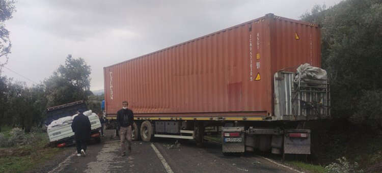 Bursa'nın Orhangazi ilçesinde kontrolden çıkarak zeytin ağaçlarına çarpan, ardından tekrar yola çıkarak duran tırın yolu kapatması sonucu İznik Güney Yolu'nda ulaşım aksadı.