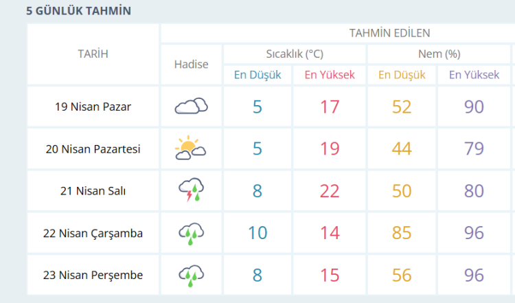 İşte Meteoroloji’nin Bursa için yayınladığı 5 günlük hava tahmin raporu: