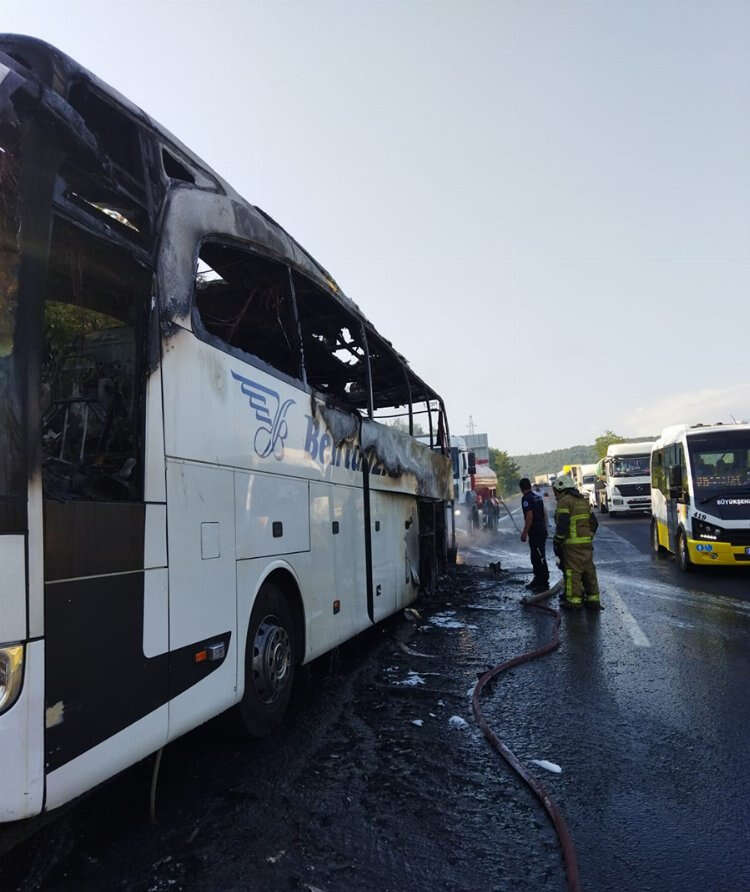 Yangını fark edince otobüsü hemen yol kenarına park eden şoför, yolcuları hızlıca araçtan inmesini sağladı.