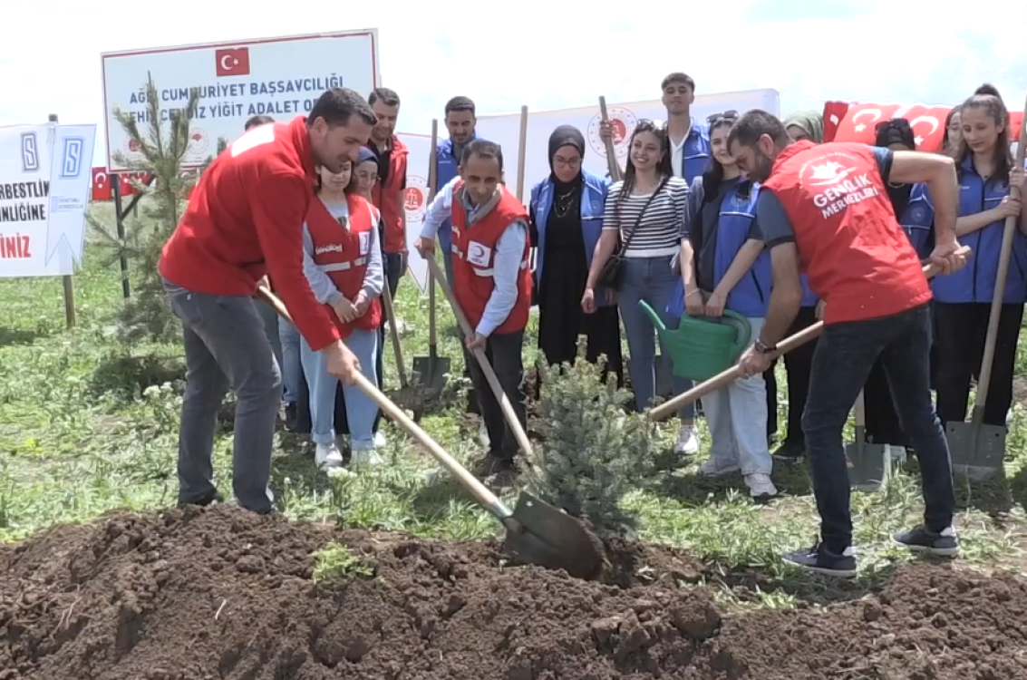 Ağrı Cumhuriyet Başsavcılığınca Ahmed-i Hani Havalimanı yakınlarındaki "Şehit İnfaz Koruma Memuru Cengiz Yiğit Adalet Ormanı"nda fidan dikim programı düzenlendi.