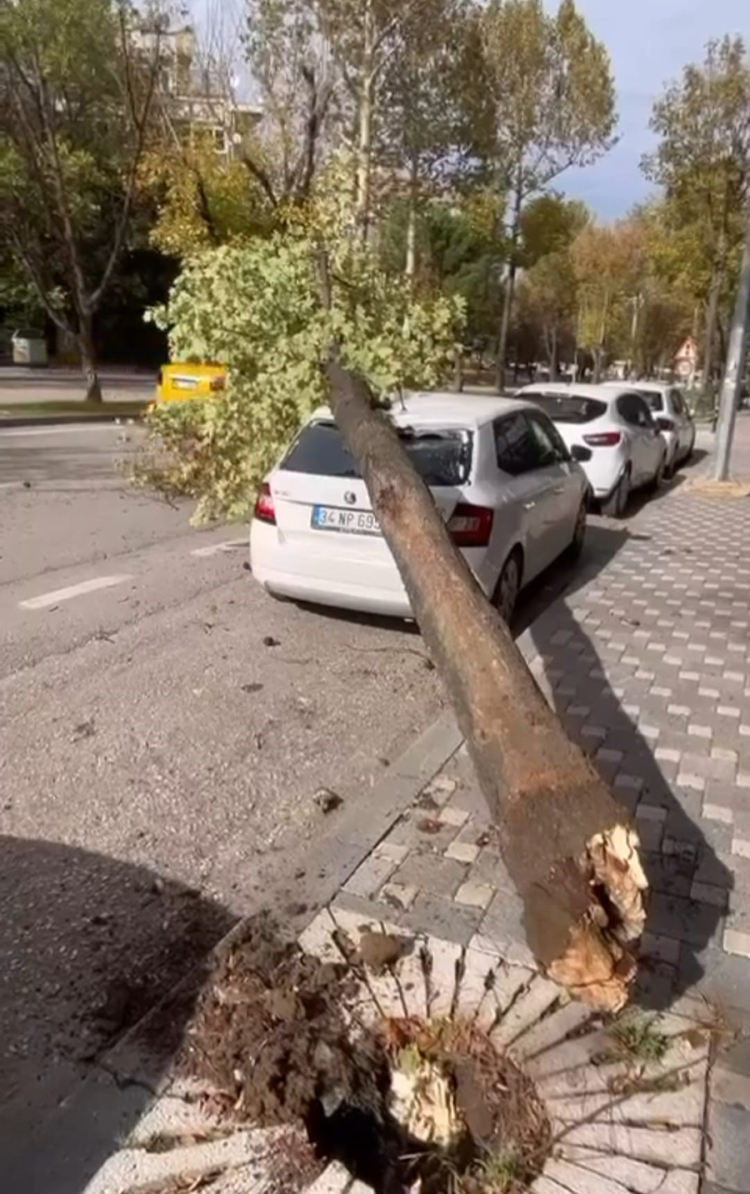 Bursa’da şiddetli lodos; Araçların üzerine ağaç devrildi tuğlalar düştü