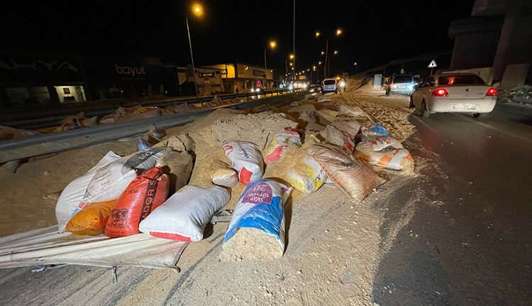 Devrilen kamyonet ve kasasındaki talaşların yola saçılmasıyla kısmen kapanan güzergahta trafik yoğunluğu oluştu.