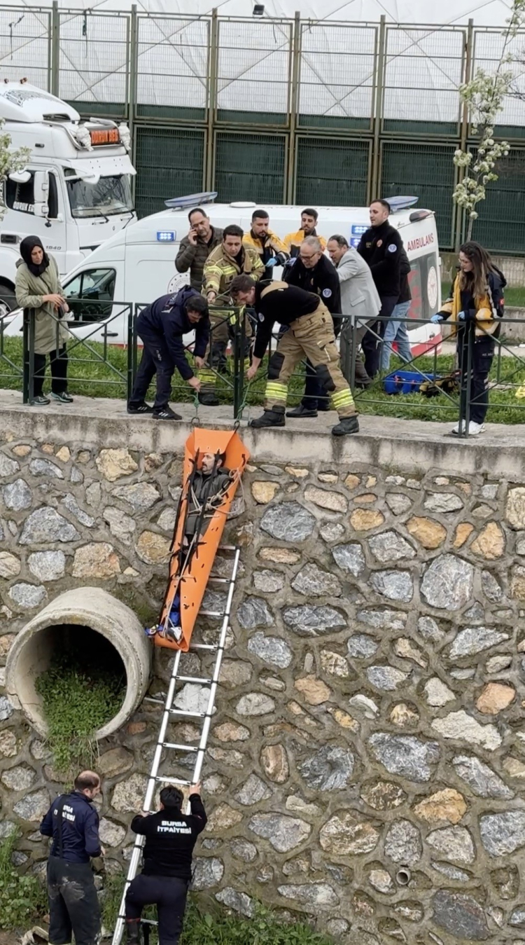 Bursa'nın Kestel ilçesinde çocuğunun kaçan topunu almak isterken dereye düşen adam, ekipler tarafından kurtarılarak hastaneye kaldırıldı.