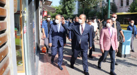 Bursa Valisi Yakup Canbolat, Bursa Büyükşehir Belediye Başkanı Alinur Aktaş, İl Sağlık Müdürü Halim Ömer Kaşıkcı, Bursa Emniyet Müdürü Tacettin Aslan, İl Jandarma Komutanı Hakan Saraç ve bazı kamu kurumu temsilcileri, sokakta ve iş yerlerinde sosyal mesafe kuralına ve maske kullanımı zorunluluğuna uyulup uyulmadığını denetledi.