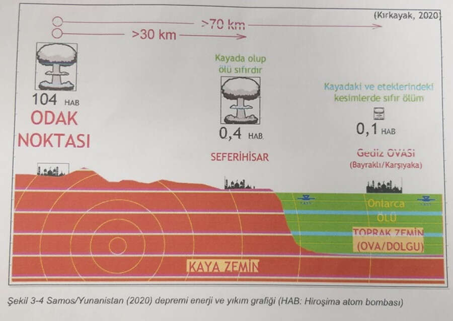 "İzmir'de deprem 27 km uzaklıktaki Seferihisar'da değil, 70 km uzaklıktaki Bayraklı'da hasara yol açtı, can kayıpları yaşandı. Sebebi alüvyon zemin üzerine imara açılmış olan Bayraklı'nın zemin yapısı. Oradaki zemin depremin etkisini büyütmüş ve büyüterek binaların yıkılmasına etki etmiş. Bu öngörülebilecek bir durum. Bugünkü teknolojiye göre yapılmış olsalardı bu binalar hasar görebilirdi ama çökmezdi."
