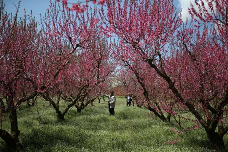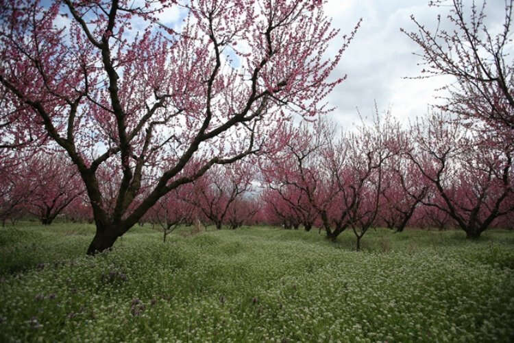 Kentin meşhur şeftalisinin üretildiği bahçelerde ise ağaçlardaki pembe çiçekler ve zeminin yeşilliğiyle ayrı bir güzellik oluştu.
