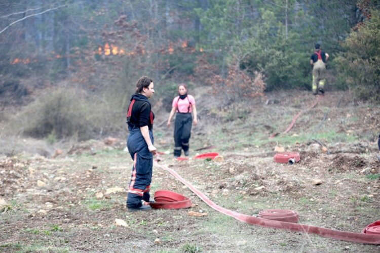 Bursa Büyükşehir Belediyesi itfaiye ekiplerinin kadın stajyerleri de söndürme çalışmalarında görev aldı.