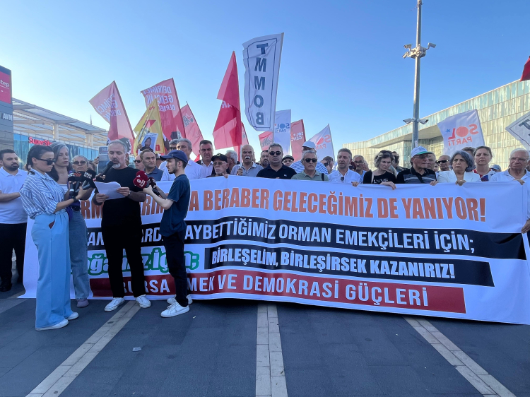 Bursa Emek ve Demokrasi Güçleri, artan orman yangınlarına dikkat çekmek için Bursa Kent Meydanı’nda açıklama yaptı. Yangınların iklim değişikliği, madencilik izinleri ve denetimsizlikten kaynaklandığı, kayıpların koordinasyonsuzluktan kaynaklandığı vurgulandı.