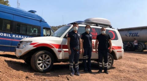 Bursa'dan Muğla'ya giden 112 ve UMKE ekipleri, yangınların devam ettiği bölgede çalışmalara destek veriyor.