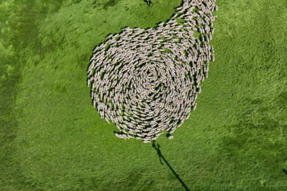 Gökyüzünden çekilen bu eşsiz görüntüler, doğayla iç içe hayvancılığın sanatsal bir anlatıma dönüştüğünü gözler önüne serdi. 20 bin küçükbaş hayvanın meralarda otlatıldığı işletmede, çobanlar tarafından yönlendirilen sürünün senkronize hareketi, izleyenleri adeta mest etti. Çobanların yönlendirmesiyle oluşan bu dairesel hareketin gökyüzünden görüntüsü, adeta bir dans gösterisini andırdı.