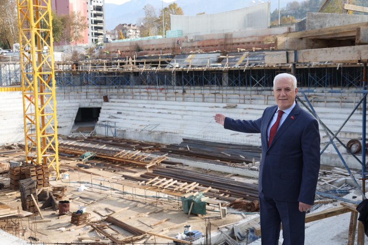 Bursa Büyükşehir Belediyesi'nce tekrar ayağa kaldırılacak olan kentin simge yapılarından Atatürk Spor Salonu'nda inşaat tüm hızıyla devam ediyor. Seyirci kapasitesi 5016'ya çıkarılan salonun Türkiye'de örnek bir yapı olacağını söyleyen Mustafa Bozbey, "Bu salonda, Avrupa'nın ve dünyanın önemli takımlarını izleme fırsatı bulacağız" dedi.
