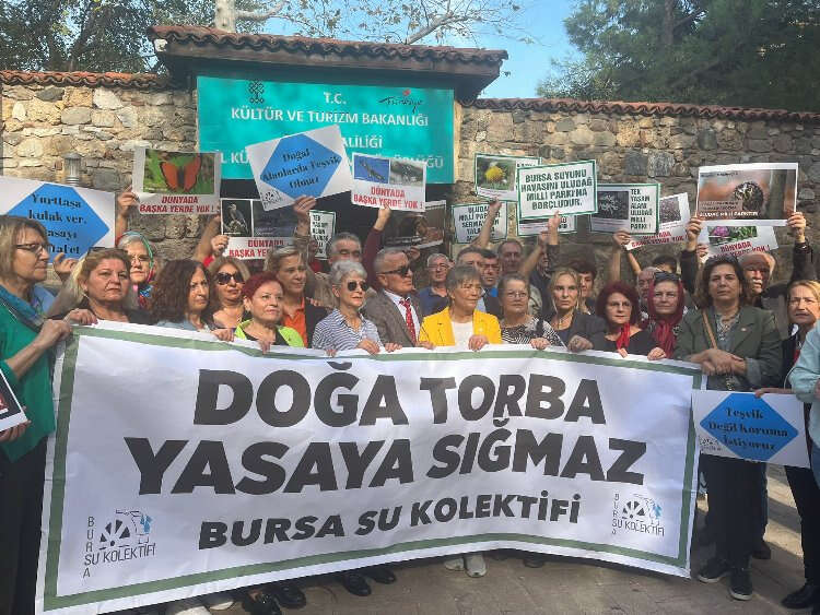 Bursa Su Kolektifi, torba yasayla Milli Parklar Kanunu'nda otel işletmelerinin Turizm Bakanlığı'na devredilmesini basın açıklamasıyla protesto etti. Açıklamada, "Erdoğan - AKP iktidarı yine turizmciye torbadan rant çıkardı" denildi.