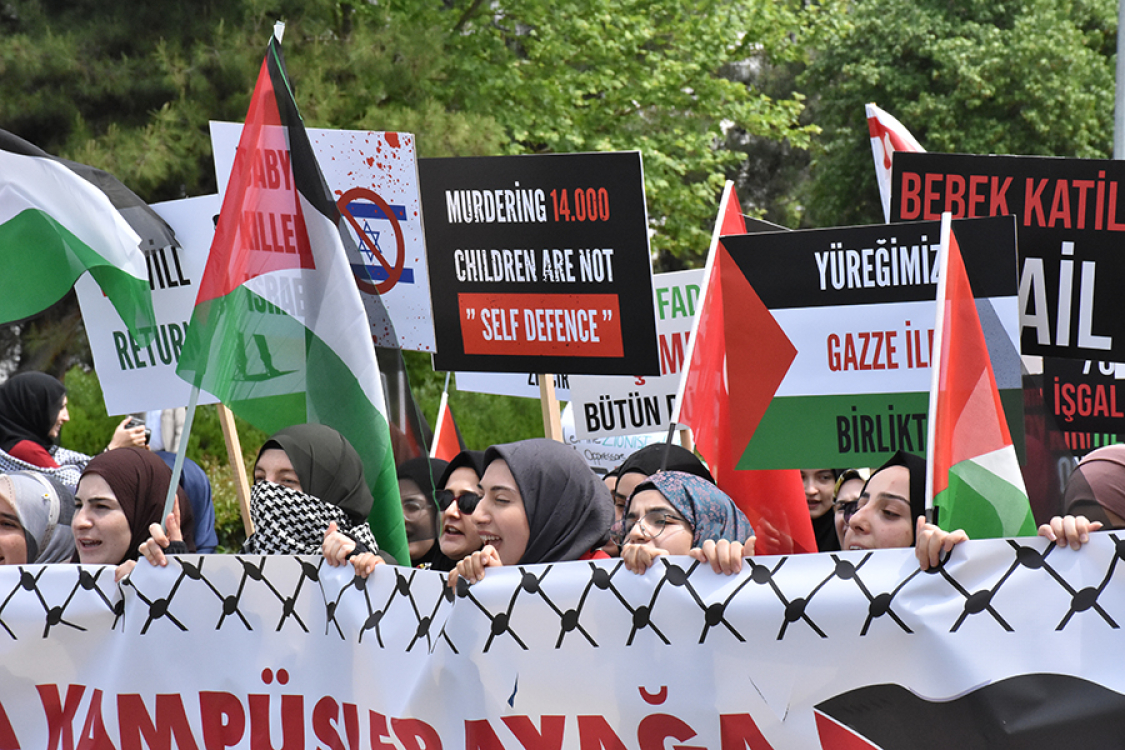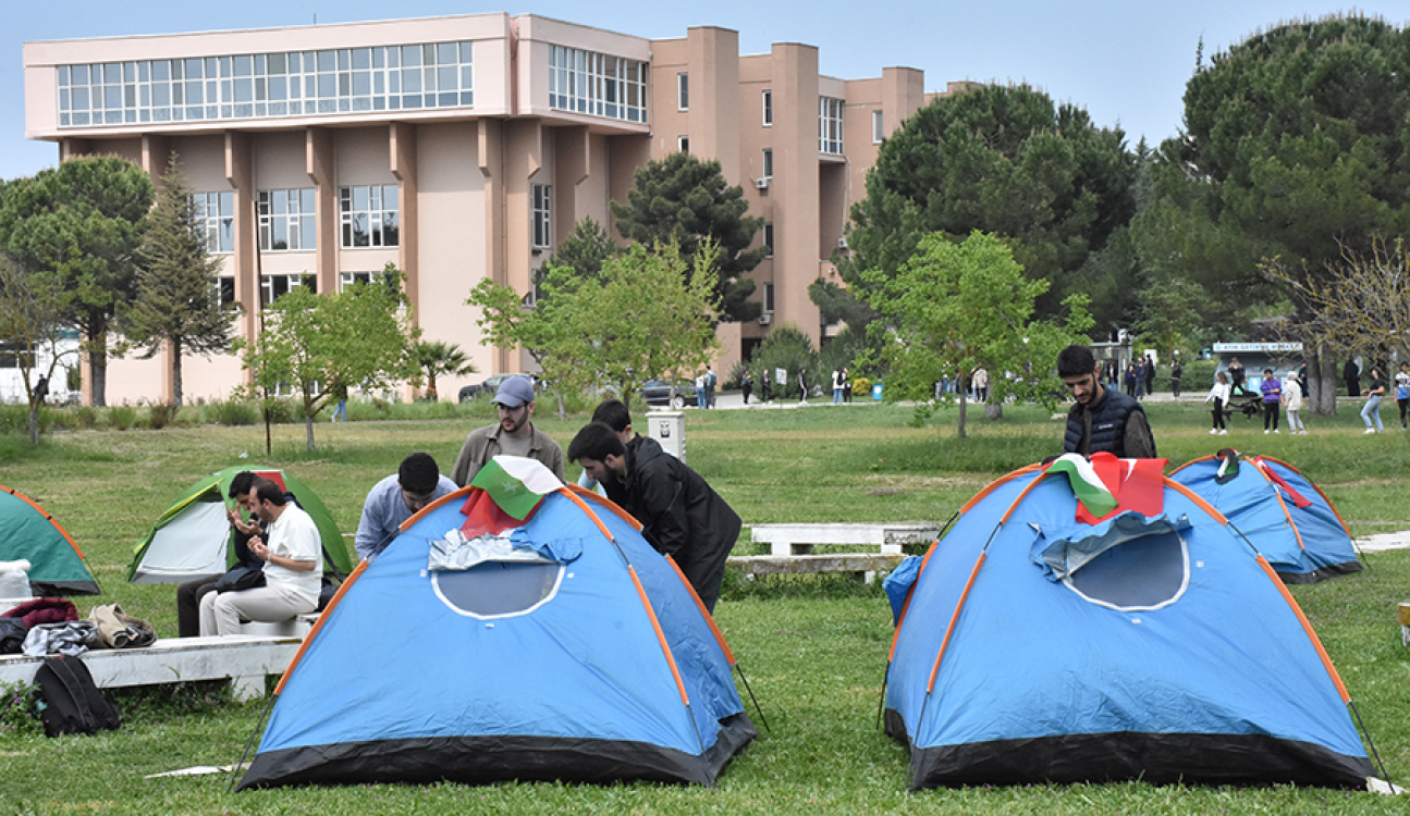 Bursa Uludağ Üniversitesi öğrencileri ve akademisyenler ABD'deki üniversitelerde İsrail'in Gazze'deki saldırılarını protesto için başlatılan "vicdan intifadası"na destek vermek için biraraya geldi.