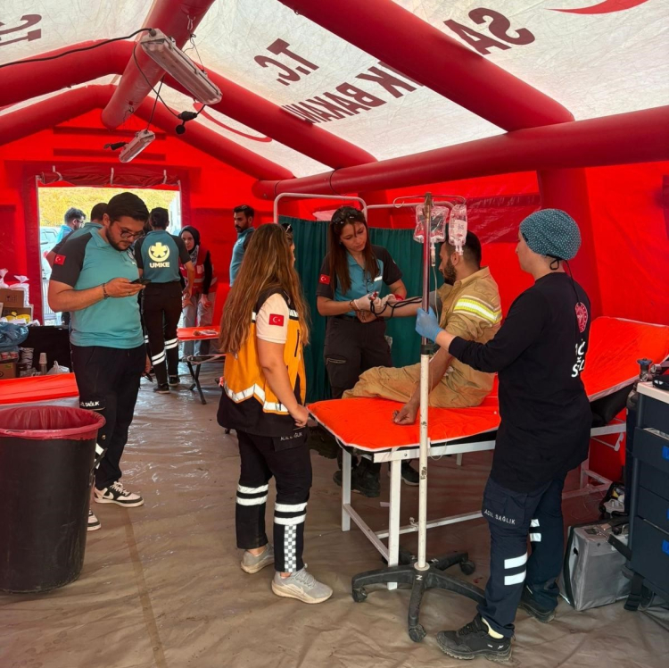 Bursa’da geçen günlerde birçok noktada çıkan orman yangınlarında, yangın söndürme ekiplerinin mücadelesi kadar sağlık ekiplerinin özverili çalışmaları da damga vurdu. Yangın süresince 3 noktada kurulan sahra hastanesinde 73 UMKE (Ulusal Medikal Kurtarma Ekibi) personeli görev yaparken, 350’ye yakın vatandaşa tıbbi müdahalede bulunuldu.