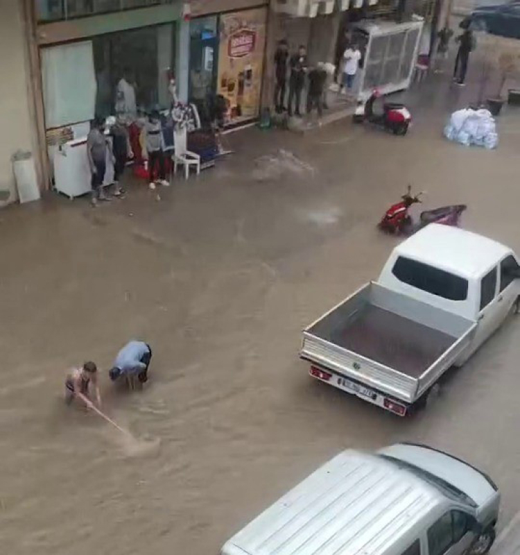 Sürücülerin ilerlemekte zorlandığı, vatandaşların dizlerine kadar çıkan suyla mücadele ettiği görüldü.