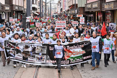 Bursa'da, İsrail'in Gazze'ye saldırılarını protesto etmek amacıyla "Filistin İçin Çocuklarla El Ele Zinciri" adlı etkinlik kapsamında "insan zinciri" oluşturulmasının ardından yürüyüş yapıldı.