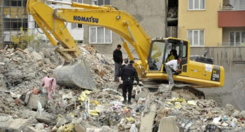 Van'da 7.2 büyüklüğündeki depremde zarar gören hasarlı bina, yıkım sırasında çöktü. Enkaz altında kalan kepçe operatörü yaşamını yitirdi.