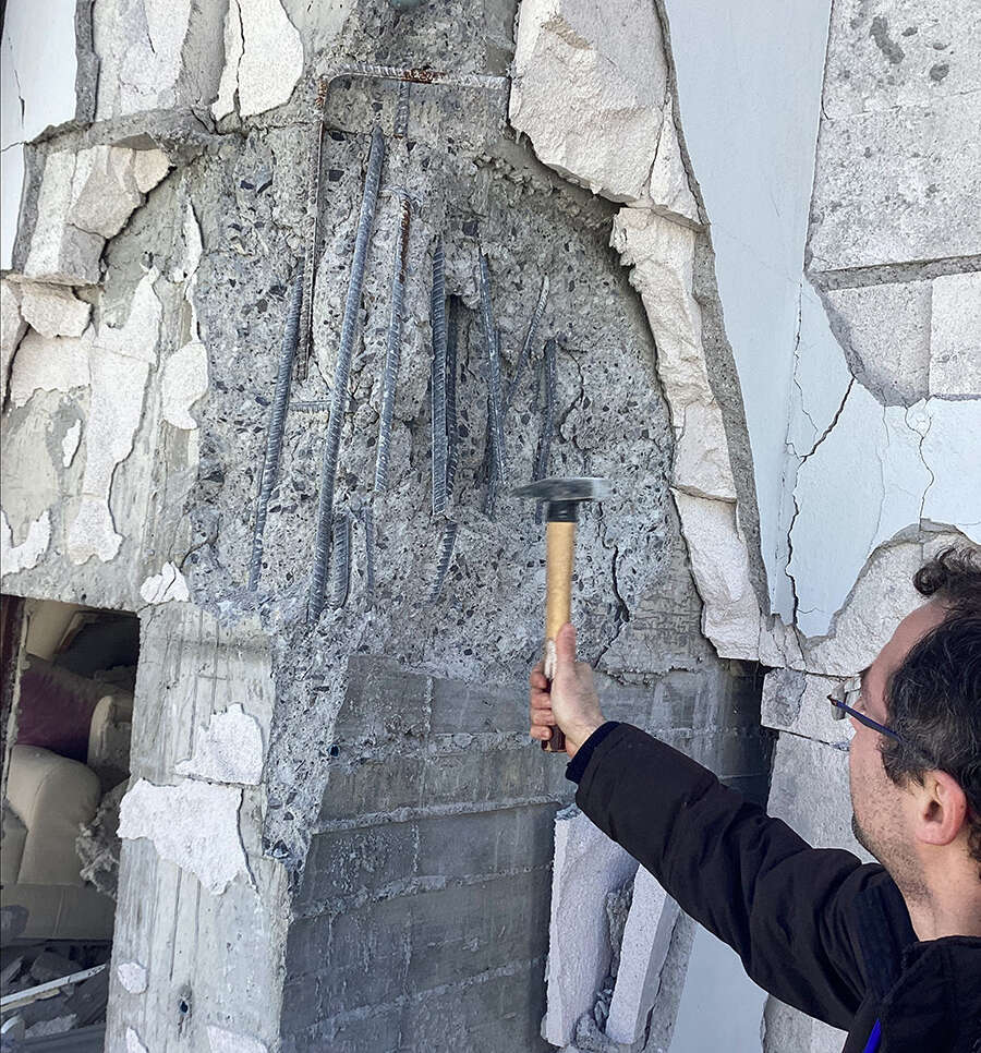 "TÜBİTAK'ın yayınladığı projeye DEPAR bünyesindeki iki hocamız başvurdu. Onların yürütücülüğünde ve Rektörümüz Prof. Dr. Naci Çağlar'ın öncülüğünde kısa süre sonra bölgeye iki heyet olarak gittik. Daha önce Elazığ, yakın zamanda İzmir'i etkileyen Samos'ta (Sisam Adası) meydana gelen depremlerde de gördüğümüz binalardaki maalesef aynı hataları gördük. Bunlardan en çok hasara sebep olanlar 2000 öncesi yapılarda gözlemlediğimiz düz donatının kullanılması, düz donatı mevcudiyeti ve beton kalitesinin düşüklüğüydü. Aynı zamanda yine etriyelerin uygun yerlerde kullanılmaması, kolon ve kiriş birleşimlerindeki donatıların eksikliği, aderans (bağ) eksikliği... Bunlar çok büyük depremlerdi. Bu hataların hiçbirini maalesef affetmedi."