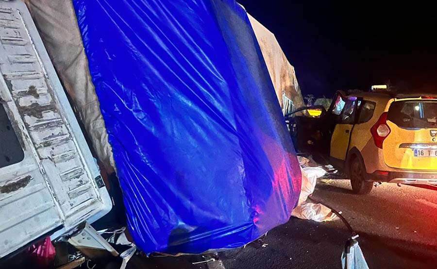Tır sürücüsünün yara almadan atlattığı bu kazadan bir süre sonra karşı şeritten gelen Beyhan G'nin kullandığı 16 T 6024 plakalı taksi, yoldaki malzemelere çarptı.