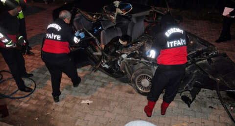 Kazada araç içinde sıkışan iki kişinin cesedi, bir saatlik çalışmanın sonucunda bulundukları yerden çıkarılabildi.