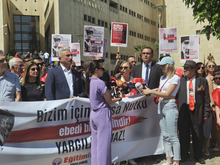 Eğitim İş Bursa Şube Başkanı Özkan Rona'nın, "Bursa Nutku" alıntısı nedeniyle yargılandığı dava Bursa'da başladı. Eğitim İş Genel Özlük-Hukuk ve TİS Sekreteri Yeliz Toy, basın açıklamasında davanın Cumhuriyet değerlerini hedef aldığını belirtti.