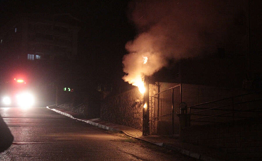 Dumlupınar Mahallesi Efes Sokak'taki elektrik direği, henüz öğrenilemeyen nedenle yanmaya başladı.