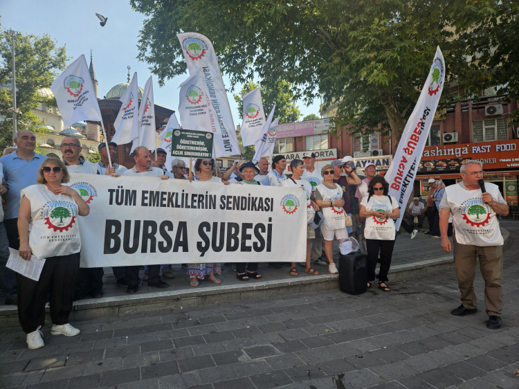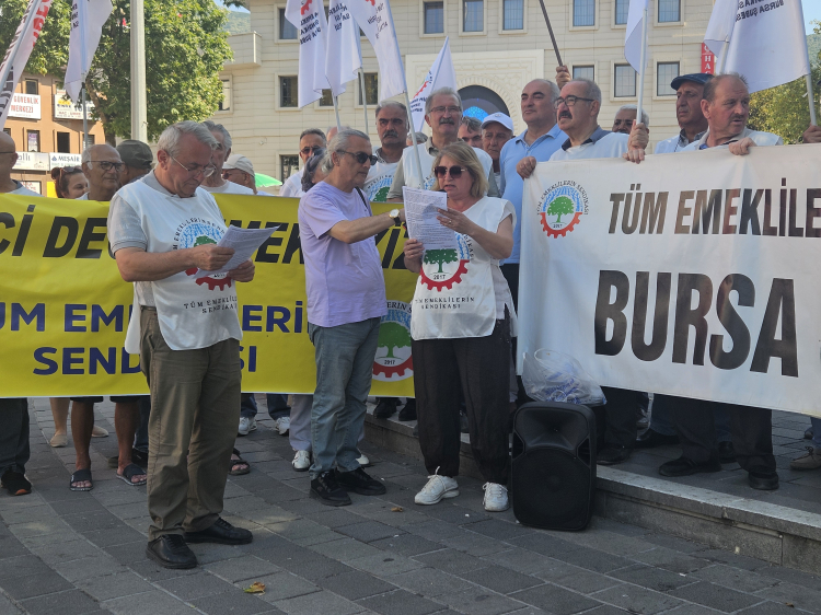 Tüm Emeklilerin Sendikası Bursa Şubesi, "Onurlu Yaşam İçin Emeklilerin Dayanışması" çerçevesinde Fomara Meydanı'nda açıklama yaptı. Emekliler, ekonomik adalet ve demokratik haklar ile ilgili taleplerini dile getirdi.