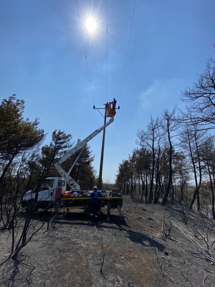 UEDAŞ, AFAD ile koordineli olarak hızlı bir şekilde yangından etkilenen ve etkilenme riski bulunan bölgelerde kontrollü enerji kesintileri uyguladı. Sahaya yönlendirilen teknik ekipler tarafından hasar tespit çalışmaları ve müdahaleler gerçekleştirildi. Çanakkale Merkez ve Bayramiç’te yapılan şebeke hasar tespitlerinin ardından enerji şebekeleri kademeli olarak yeniden devreye alındı.