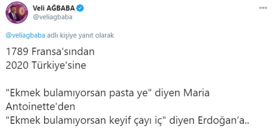 1789 Fransa'sından 2020 Türkiye'sine "Ekmek bulamıyorsan pasta ye" diyen Maria Antoinette'den "Ekmek bulamıyorsan keyif çayı iç" diyen Erdoğan'a..."