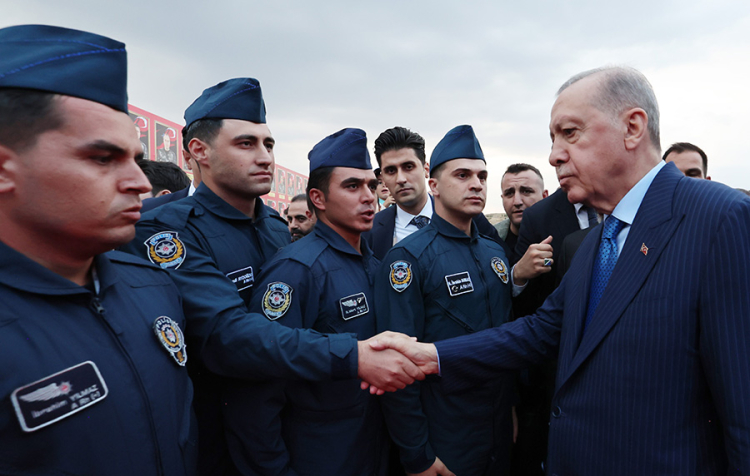 Erdoğan, FETÖ’nün 15 Temmuz 2016’daki darbe girişiminin, Türk milletinin bin yıllık tarihinde yaşadığı en ağır ihanetlerden biri olduğunu vurgulayarak, "Onlar Türkiye’nin Akıncı Beyleriydi. Selam olsun bu milletin Akıncı Beylerine. Can feda olsun kahraman polisin özel harekat erlerine. Kahraman şehitlerimizin kabirleri pür nur olsun. Rabbim onları Peygamber Efendimiz’e inşallah komşu eylesin. Malumunuz şehit şahit olan hazır bulunan demektir. Evet onlar şu anda bizleri görüyor. Bizleri duyuyor. Rabbimizin lütuf ve keremine de inşallah mazhar oluyorlar. Peygamberlikten sonraki en yüce makamda gönül huzuruyla oturuyorlar. Cenabı Mevla bizleri şehitlerimizin şefaatine nail eylesin. Rabbim sizlerin de ayağınıza taş değdirmesin. Sizleri daima muzaffer ve muvaffak eylesin diyorum. 15 Temmuz 2016’da bu topraklardaki bin yıllık tarihimizin en ağır ihanetlerinden birine uğradık. Gazi Meclisimiz, Cumhurbaşkanlığı Külliyemiz, Genelkurmay Başkanlığımız, Ankara Emniyetimiz, TRT ve TÜRKSAT’ın yanı sıra Gölbaşı’ndaki Özel Harekat Başkanlığımız da saldırıya maruz kaldı" diye konuştu.
