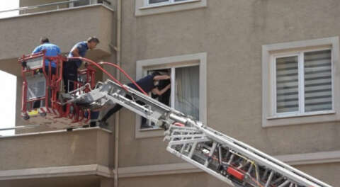 Eşi tarafından evden çıkmasına izin verilmeyen kadın, eşinin bir anlık boşluğundan faydalanarak kendisini başka bir odaya kilitledi ve pencereyi açıp komşularından yardım istedi. İhbar üzerine kısa sürede olay yerine çok sayıda polis ekibi sevk edildi.