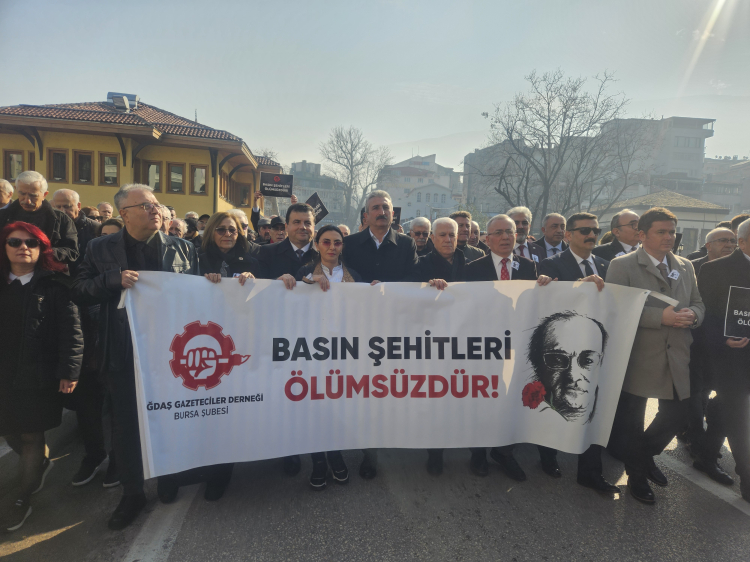 Setbaşı'ndaki Şehir Kütüphanesi önünde başlayan anma programına Bursa Büyükşehir Belediye Başkanı Mustafa Bozbey, Osmangazi Belediye Başkanı Erkan Aydın, Nilüfer Belediye Başkanı Şadi Özdemir, CHP Bursa Milletvekilleri Hasan Öztürk, Nurhayat Altaca Kayışoğlu, Kayıhan Pala, İYİ Parti Bursa Milletvekili Selçuk Türkoğlu, Bursa Baro Başkanı Av. Metin Öztosun, CHP İl Başkanı Nihat Yeşiltaş, Bursa Kent Konseyi Başkanı Ertuğrul Aksoy, STK temsilcileri ve çok sayıda basın emekçisi katıldı. Heykel'e yürüyen grup Atatürk Anıtı'na çelenk bırakarak saygı duruşunda bulundu.