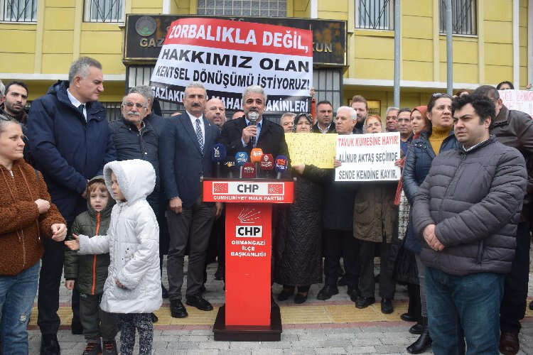 Cumhuriyet Halk Partisi Osmangazi İlçe Başkanlığı, CHP Bursa İl Başkanı Nihat Yeşiltaş ve Bursa Büyükşehir Belediyesi Başkan Adayı Mustafa Bozbey’in de katılımıyla Gaziakdemir Mahallesi kentsel dönüşüm sürecinde mağduriyet yaşayan vatandaşların sorunlarını dile getirmek üzere basın açıklaması gerçekleştirdi.