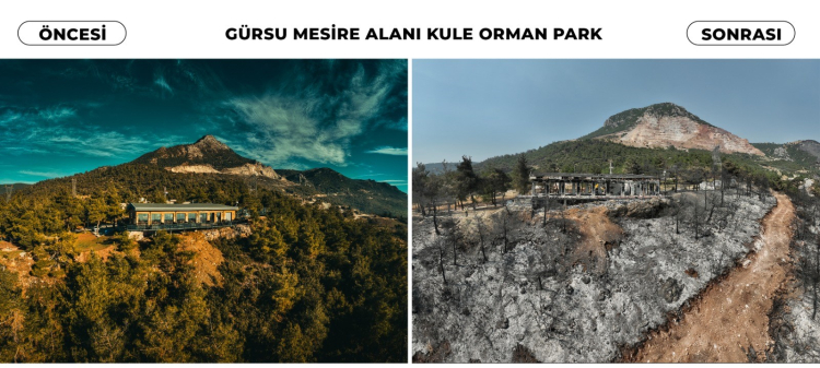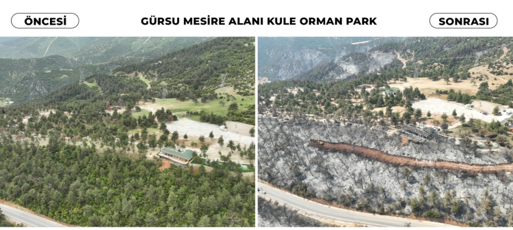 Gürsu ilçesinde çıkan ve tarihinin en büyük felaketlerinden birisi olarak değerlendirilen orman yangını sonrası, ortaya çıkan manzaralar yürek burktu. Dron ile görüntülenen esik yemyeşil ormanlık alının küle dönmüş son hali herkesi duygulandırdı. Katırlı Dağı'nın eteklerinin kapkara olduğu ve tüm güzel yeşil alanların küle döndüğü görüldü. Özellikle İğdir Mahallesi sınırlarında yer alan Gürsu Belediyesi'nin 80 dönümlük dev mesire alını da büyük zarar gördü. Seyir terasları 150 kişilik restoran ve balon evleri ile şehrin en güzel bölgesi, yerini en acı görüntülere bıraktı.