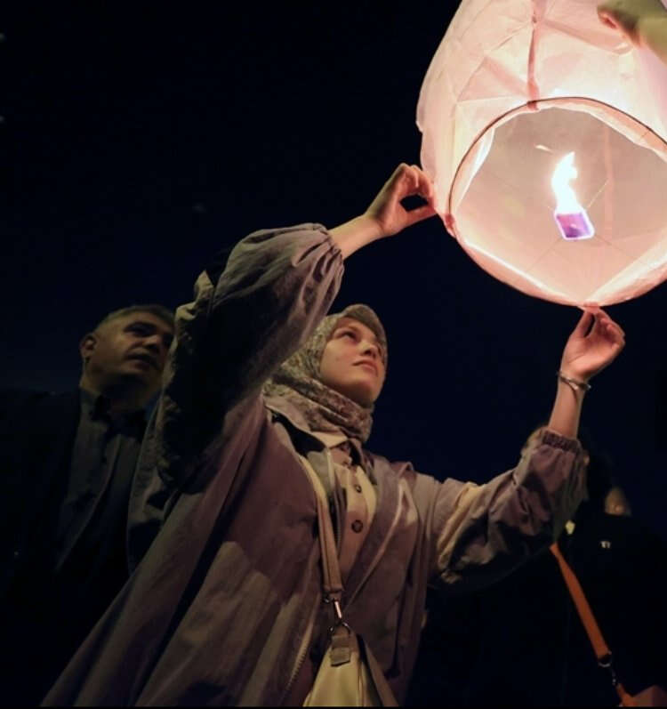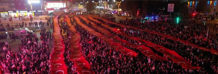 Gaziantep'in Nizip ilçesinde Cumhuriyet'in 100. yılı kutlamaları kapsamında düzenlenen fener alayında buluşan grup, ellerinde dev Türk bayrakları, Atatürk'ün fotoğrafları ve meşalelerle Millet Bahçesi'ne kadar yürüdü.