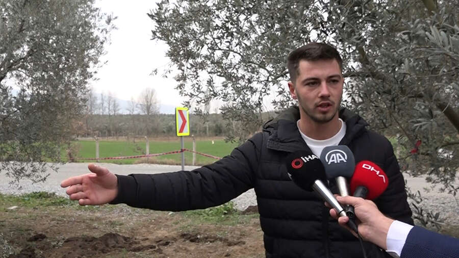 "Traktörle gübreyi dağıtmaya başladım. Sağ tarafı bitirdim. Bir şey gördüğümü fark ettim. Traktöre bağlı kepçeyle gübreyi kaldırdım, ceset meydana çıktı. Sonra panik olduk, hemen ekiplere haber verdik. Jandarma ve savcı geldi, olay meydana çıktı. Gübreyi Orhangazi’den aldık, her sene aynı kişiden gübre alırız. Zeytin hasadı bittikten sonra gübre sezonu başlar."