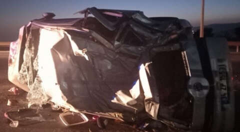 Hurdaya dönen otomobildeki 3 kişi yaralı kurtuldu