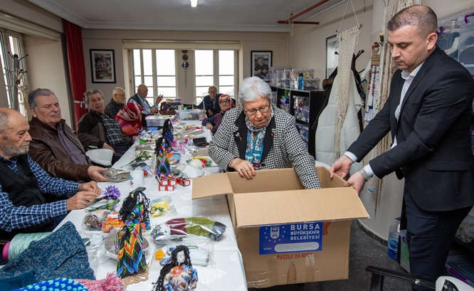Bursa Büyükşehir Belediyesi Huzurevi sakinlerinin her yıl kermes için hazırladığı el emeği atkı, bere, oyuncak ve çanta gibi ürünler bu sene depremzede çocuklara gönderilecek.