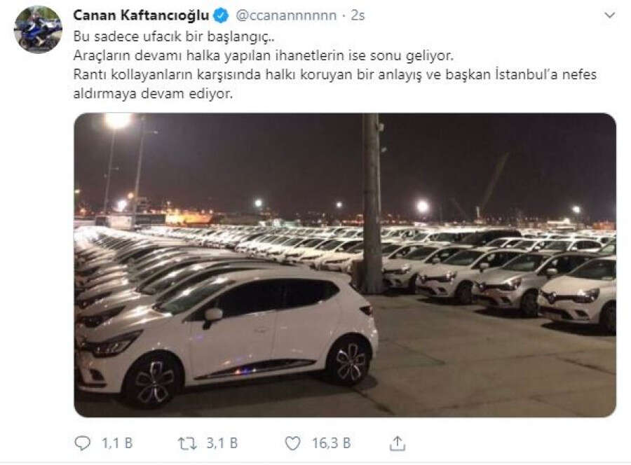 İstanbul Büyükşehir Belediye Başkanı Ekrem İmamoğlu, daha önce yaptığı açıklamada, araçların toplanması için çalışma arkadaşlarına talimat verdiğini söylemişti. Yüzlerce aracın müdür, daire başkanları hatta bu kişilerin ailelerinin kullanımına verildiği belirtilmişti.