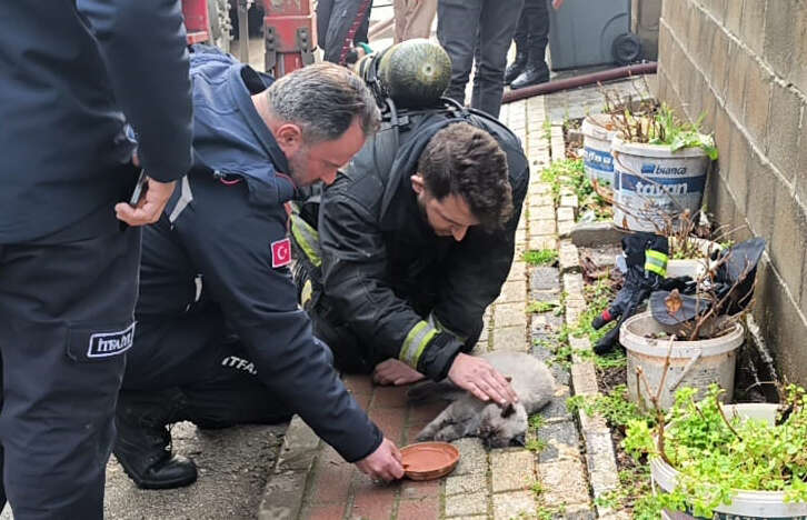 Dumandan etkilenen bir kediye ise itfaiyeciler müdahale ederek su içirdi.