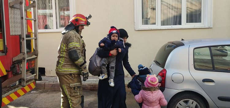 Söndürme çalışmaları sırasında binada ikamet eden bazı vatandaşlar, dumandan etkilenmemeleri için tahliye edildi.