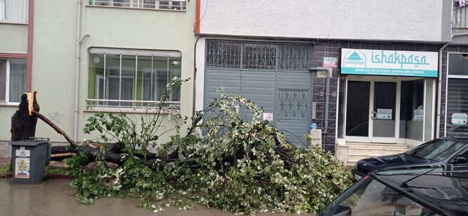 Hamidiye Mahallesi ile Ağaç İşleri Küçük Sanayi Sitesi'nde bulunan bazı ağaçlara yıldırım isabet etti.
