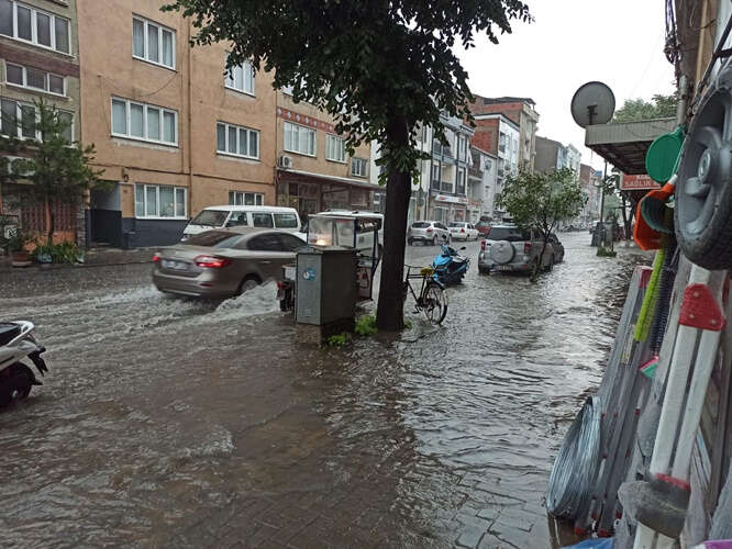 İnegöl'de şiddetli yağış hayatı felç etti