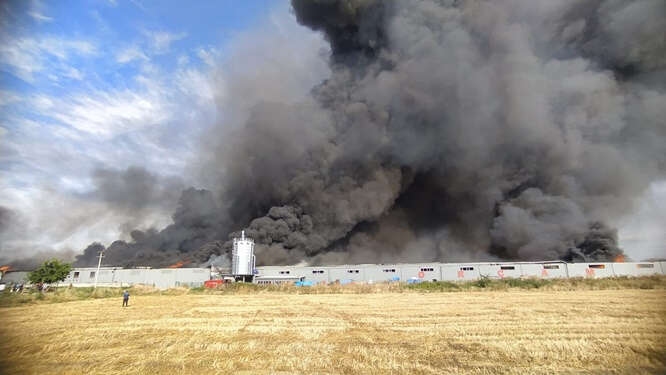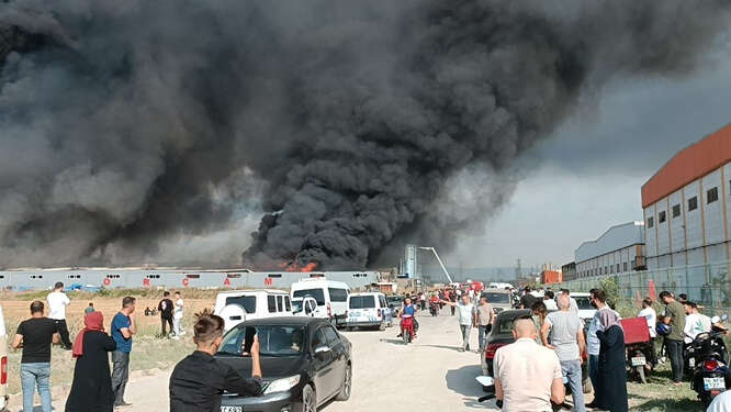 Fabrikalardan yükselen dumanın, ilçenin birçok noktasından görüldüğü bölgede, ekiplerin müdahalesi sırasında zaman zaman patlamalar yaşanıyor.