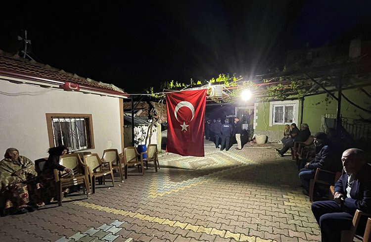 Şehidin baba ocağı ile evinin bulunduğu sokağa Türk bayrakları asıldı.