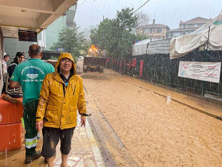 Geceden beri aralıklı devam eden yağış nedeniyle Sarıyer'deki bazı ev ve iş yerlerini su bastı.